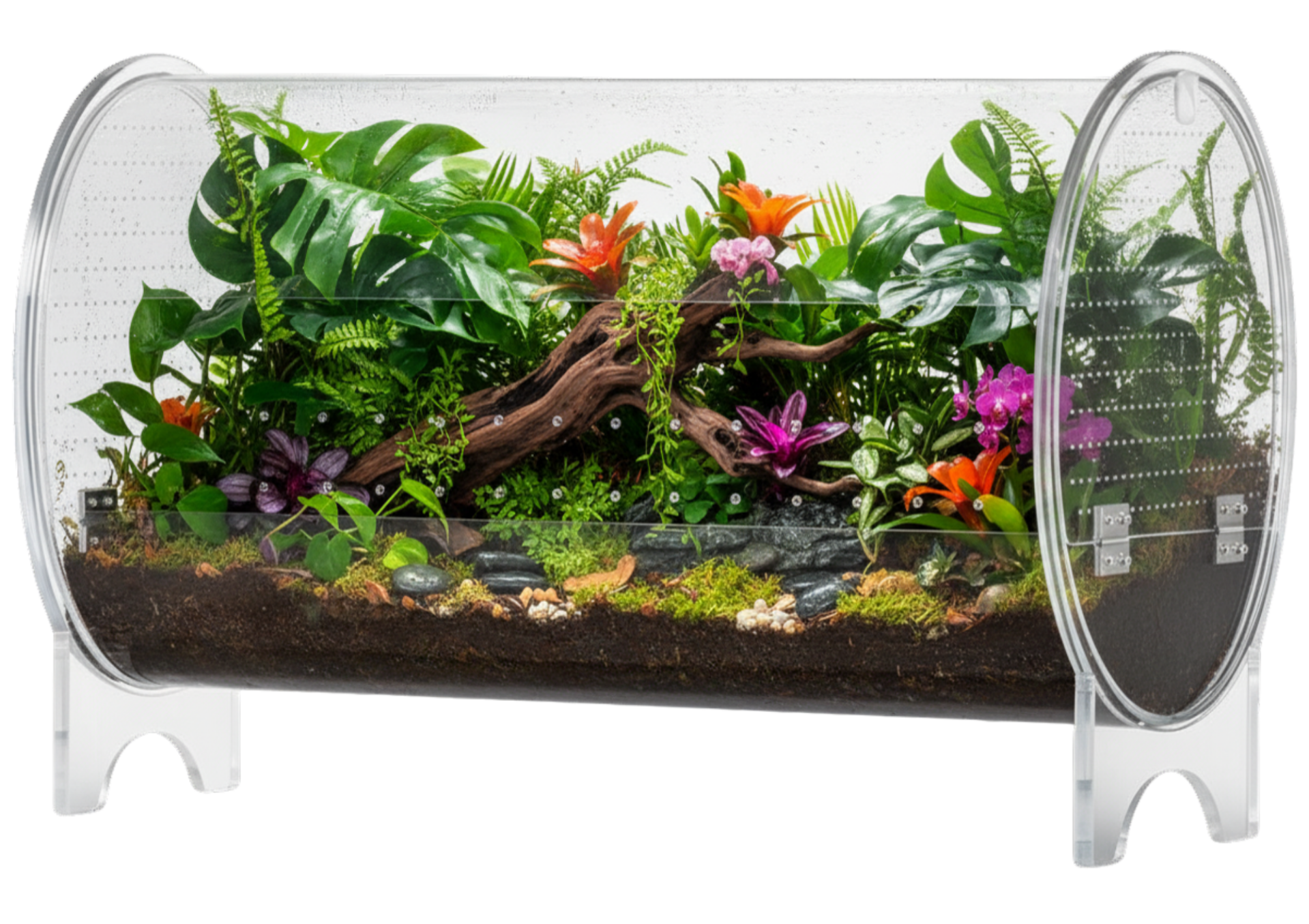 De unieke cilindervorm geeft dit terrarium een stijlvolle uitstraling en een optimaal 360 graden zicht.